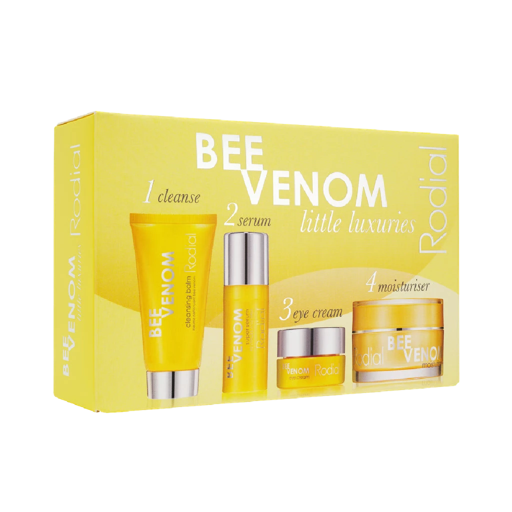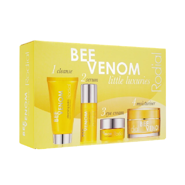 Luxusný darčekový set na rozjasnenie a spevnenie pleti. Obsahuje 4 obľúbené prípravky Rodial s peptidom z včelieho jedu, ktorý má veľmi silné anti-age účinky. V balíčku nájdete čistiaci gél, pleťové sérum, očný krém a pleťový krém. Praktické menšie balenie je ideálne na vyskúšanie alebo na cesty.