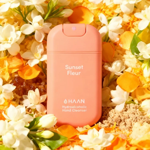 Antibakteriálny sprej na ruky HAAN Sunset Fleur spája dokonalú hygienu, jemnú starostlivosť a prírodnú eleganciu v jednom kroku. Vďaka vysokému obsahu aloe vera nielen účinne čistí, ale zároveň zanecháva pokožku hebkú, sviežu a príjemne hydratovanú. Je ideálny pre každého, kto si potrpí na dokonale čisté ruky a miluje vôňu rozkvitnutej lúky počas západu slnka.