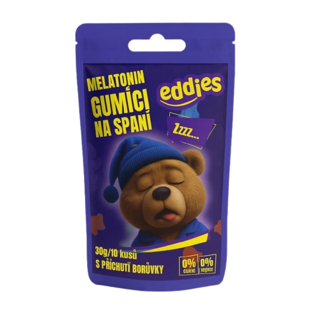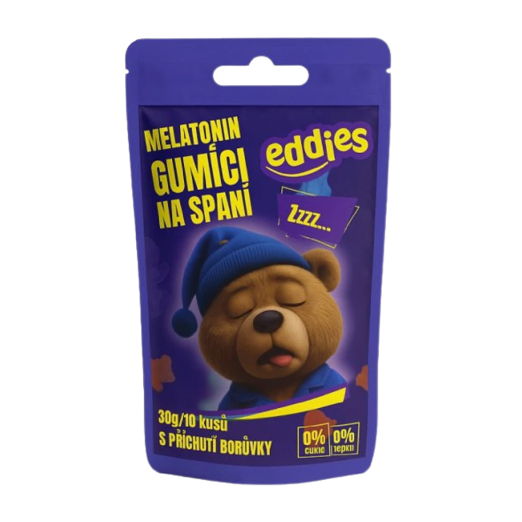 Ležíte večer v posteli a hlavou vám beží nekonečný zoznam úloh? Eddies Sleep Gummies prinášajú melatonín v podobe lahodného gumídka s príchuťou čučoriedky, ktorý vám pomôže zaspať rýchlejšie a prebudiť sa svieži – bez ťažkej hlavy, bez návykovosti a bez prehĺtania tabliet.