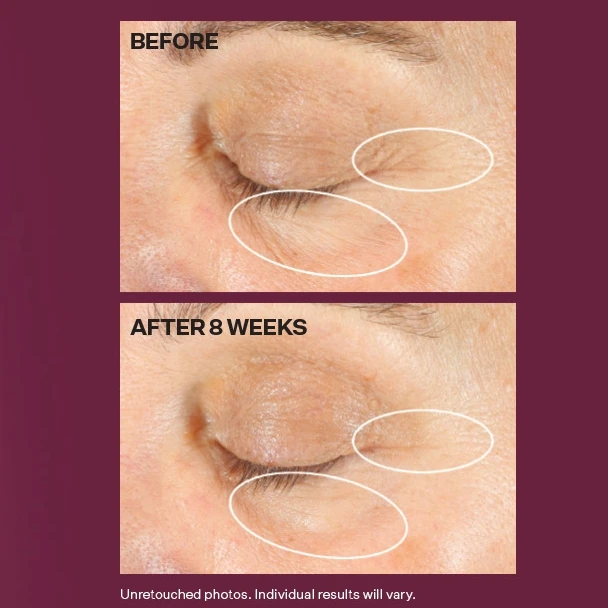 Špeciálna forma retinolu viditeľne koriguje známky starnutia v očnom okolí bez dráždivého účinku. Účinné a zároveň šetrné zloženie proti starnutiu obsahuje retinol s riadeným uvoľňovaním, ktorý podporuje obnovu kožných buniek a regeneráciu pleti. Ďalšou aktívnou zložkou je niacín alebo NIA-114™, ktorý znižuje citlivosť pokožky. Rastlinné zložky pomáhajú hydratovať a spevňovať namáhanú pleť v okolí očí.