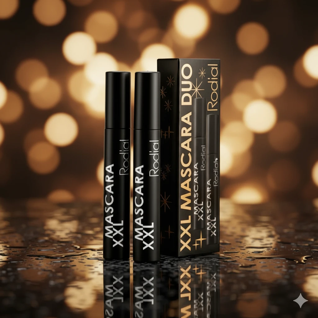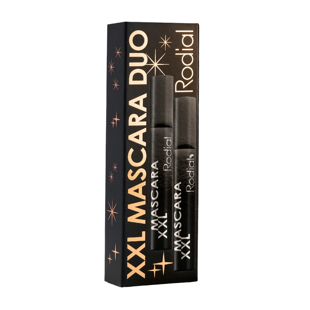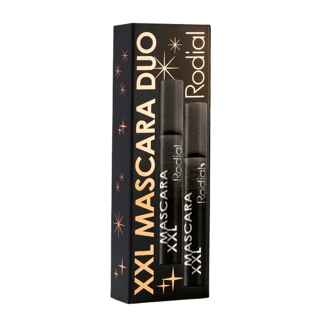 Výhodný darčekový set 2 riaseniek Rodial Glamolash Mascara XXL. Zvýhodnený balíček obsahuje obľúbené objemové riasenky v intenzívnej čiernej farbe. Ošetrujúca receptúra so zvláčňujúcim včelím voskom sa stará o riasy a dodáva im lesk.